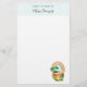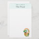Papier à lettres avec une adorable illustration montrant un pot vert et or souriant avec un arc-en-ciel mignon, un nuage heureux et un trèfle vert. Parfait pour la Saint-Patty's Day.