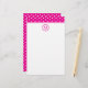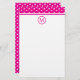 Ce joli papier à lettres monogrammé présente des pois blancs préppy sur un arrière - plan rose vif. Personnalisez le monogramme rose et blanc correspondant avec votre choix d'origine.