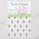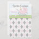 Un petit gardien mignon avec un bébé dans un chariot vintage rose sur une pelouse gazonnée, garni d'oiseaux roses et d'un lapin lapin rose, contre un ciel bleu pastel avec des nuages blancs bouffants. Le nom de l’enfant est placé en haut dans les grandes lettres décoratives, tandis que la date de naissance et l’heure de naissance, la longueur et le poids de l’enfant sont indiqués en bas et en bas dans les lettres roses. Un souvenir parfait pour la nouvelle petite fille. Tout cela sur un arrière - plan Jacquard rose, noir et blanc (diamant). Une excellente idée cadeau pour les nouveaux parents.