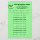 Annoncez les produits ou services de votre entreprise aux clients. Faites la promotion de votre marque. Construisez la sensibilisation à la marque. Papier à lettres personnalisable que vous pouvez utiliser comme matériel marketing pour afficher la liste de vos produits ou services aux clients. La couleur est vert clair. La couleur de la police est vert foncé. Pour customiser ce papier à lettres, téléchargez votre logo d'entreprise, tapez votre nom d'entreprise ou d'entreprise, votre adresse, votre numéro de téléphone, votre courriel, votre site Web ou votre page de médias sociaux, vos produits ou services et les prix. Veuillez vérifier l'apparence après avoir téléchargé le logo et tapé des textes. Si l'apparence vous plaît, vous pouvez passer votre commande maintenant. Si vous avez besoin de redimensionner et déplacer le logo et les textes pour s'adapter à cette papeterie, s'il vous plaît changer dans l'outil de conception. Vous pouvez également effectuer d'autres modifications selon vos préférences dans l'outil de conception, comme changer la couleur du papier à lettres, la couleur de police, le style de police, éditer des textes, ajouter des textes et supprimer des textes.