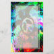 Une pleine tortue de mer de "paix" nage par des couleurs de tourbillonnement lumineuses. Une tortue de la Mer Noire soutenant un symbole de paix dans son dos nage par une mer psychédélique de couleurs lumineuses. Papeterie sans doublure.