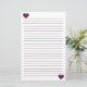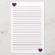 Cette papeterie rayée est parfaite pour des Valentines et pour n'importe quand celui vous voudriez envoyer un certain amour. Il comporte une peinture d'un coeur de dentelle fait dans magenta, violet, qui est montré à un début des lignes et différent à l'extrémité. Les lignes sont également une couleur semblable.