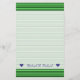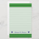 Caractéristiques de conception ce de papeterie un motif des rayures/des lignes vert clair et vert-foncé. Il comporte également un proche nommé personnalisable le fond, entre les formes de coeur. [~Z0000011]