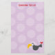 Un dessin simple et stylisé d'un bébé toucan noir de dessin animé mignon portant un gros cœur rouge (amour) sur son dos, sur un fond violet clair avec un motif de gros pois, papier à lettres personnel pour enfants, carte de remerciement vierge.