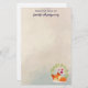 Papeterie personnalisée avec un arrière - plan couleur crème aux formes géométriques feutrées et tendance. En haut, un dessin animé représentant un mignon renard orange dormant tranquillement. Une couronne feuille verte avec 3 petits coeurs rouges derrière. Un design soigné.