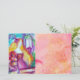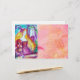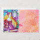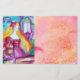Scène de balcon de Romeo et Juilet tragédie par William Shakespeare .Tableau d'aquarelle contemporaine avec feuille d'or et couleurs irisées dans violet clair, rose, vert, jaune orange, turquoise, turquoise, blanc ..Peinture de Bulgan Lumini (c)