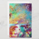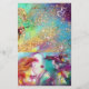 Scène de balcon de Roméo et Juilet tragédie par William Shakespeare .Tableau d'aquarelle contemporaine avec feuille d'or et couleurs irisées dans bleu clair turquoise, violet fuchsia, vert, jaune orange, bleu aqua blanc ..Peinture par Bulgan Lumini (c)