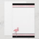 Papeterie blanche élégante, avec un en-tête et un titre de bas de page noirs avec les rayures roses et blanches. Les graphiques mignons d'un flamant assez rose décore en bas à gauche le faisant le coin de la papeterie. Customisez pour ajouter votre propre texte.