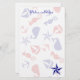 Une combinaison amusante d'hippocampes, voiliers, baleines, ancres et étoiles. Les objets Arrière - plans sont rouges et bleus.