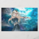 Ciel bleu éthérée - pleine lune brillant à travers les nuages - Belle déesse blonde de lune, Sirène de ciel pointant vers sa belle colombe blanche portant un seul rose