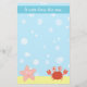Papeterie sous-marine de thème avec l'arrière - plan de bulles et animaux de mer mignons des étoiles de mer roses et du crabe rouge. Une bannière bleue à personnaliser avec votre message. Le message actuel lit "une note de la mer : " Pour des enfants qui aime le thème sous-marin ou les animaux de mer mignons.