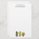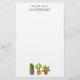 Papier à papier à lettres avec une illustration fantaisiste représentant 3 petits cactus heureux assis dans leurs pots de fleurs. Ils ont chacun leurs propres expressions uniques, souriantes et jolies.
