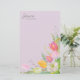 Jolie tulipes d'aquarelle rose et jaune/fleurs printanières et verdure sur la papeterie lavande. Votre nom est dans le coin supérieur gauche, écrit dans une police de script magnifique et une police serif moderne. Contactez-nous pour obtenir de l'aide sur la personnalisation ou la mise en correspondance de produits.