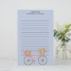 Papeterie personnalisée avec un vélo rose et une corbeille de fleurs sur un arrière - plan bleu clair. Le texte, la police, la taille de police, la couleur et le placement sont entièrement personnalisables.