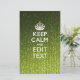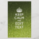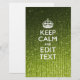 Votre citation personnalisée festive "Keep Calm" sur une belle décoration de couleur vert citron stylish personnalisée. Humoristique ou fantaisiste, essayez vos mots créatifs sur deux lignes de texte modifiables. N'oubliez pas d'utiliser des LETTRES CAPITALES pour de meilleurs résultats.