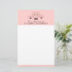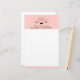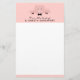 Papier à lettres avec un dessin d'un joli visage de cochon rose. Portant une cravate à arc noir. Levé par ses sabots noirs et regardant sur une table. Dessin mignon et fantaisiste. Placez-vous sur un arrière - plan rose avec quelques coeurs défraîchi ici et là.