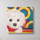 Le chiot le plus mignon dans un arrière - plan pop art. Imprimé à partir de ma peinture acrylique originale. 12" x 12" sur toile étirée de 1,25".