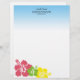 Faites une impression durable avec ces en-têtes personnels. Cette papeterie personnalisable présente un trio de fleurs d'hibiscus hawaïens avec votre nom et adresse de retour sur un arrière - plan de dégradé de couleurs. Ces en-têtes de lettres de qualité apportent une touche personnelle à la correspondance comme les lettres de félicitations, les notes de remerciement, les renvois ou les recommandations.