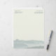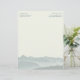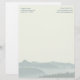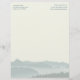 Papier à en-tête personnalisé avec scène de montagne arrière - plan à utiliser dans un bureau rural. Customisez le texte à deux endroits en haut du papier blanc cassé. Le texte est imprimé en lettres minces et aligné sur les arêtes. Trois rangées sont dans les échantillons, et d'autres peuvent être ajoutées. Ou supprimez les deux échantillons.