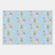 Couleurs assorties (bleu, rose et gris). Au-dessus de la savane. Le zèbre, la girafe et le lion flottent doucement avec leurs ballons colorés comme une brise les a sortis de la savane. Trois feuilles de papier d'emballage avec ces animaux sauvages capricieux. Oeuvre originale de Cecilia Kiskis.