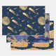 Design bleu et faux or sur cet ensemble de papier d'emballage 3 pc. Illusion d'or avec bleu marine. Si classe et joli. Parfait pour toutes les occasions. Mariage, anniversaire, douche, anniversaire, retraite et plus encore.