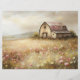 Cette charmante peinture représente une grange blanche rustique nichée dans un champ de fleurs sauvages animés, évoquant une atmosphère campagnarde paisible. Les touches douces et les tons chauds créent une scène nostalgique de style ferme, parfaite pour un décor rustique et champêtre.