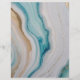 Ce magnifique design abstrait capture la beauté fascinante de l'agate avec une touche côtière. Des bandes scintillantes de turquoises lumineux, turquoise et blanc imitent les motifs complexes que l'on trouve dans les précieux opales, tout en évoquant le flux serein des courants océaniques. Les veines dorées et les taches entrecoupées dans la pièce ajoutent une touche d'opulence, rappelant les rivages baisés par le soleil. Les lignes et les calques ondulants et lisses créent un sens de profondeur et de mouvement, tout comme le baguage dans les agates naturelles. Ce morceau mêle harmonieusement l'allure des pierres précieuses à la tranquillité d'une vue sur la mer, ce qui en fait un endroit parfait pour ceux qui apprécient à la fois les merveilles géologiques et l'esthétique côtière dans une forme moderne et abstraite.