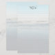 Papier à lettre personnel ligné et monogrammé. Un fond de scène de plage légère présente des vagues roulant vers la plage à marée basse. Des lignes légères recouvrent le papier sur le devant avec un modèle pour trois initiales de monogramme en haut. Le dos du papier présente également la scène de plage.
