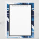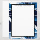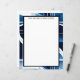 Des blocs de couleur en bleu, gris et noir, entrecoupés de lignes blanches, font un fond audacieux et saisissant pour ce papier à lettres.