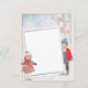 Insérez ces pages dans vos cartes de Noël pour ajouter une note de vacances spéciale pour vos proches cette année. Un garçon et une fille vintage tiennent des cadeaux de Noël et se tiennent debout sur un fond de bouleaux. Page blanche avec bordure argentée. Carte de Noël assortie disponible dans la boutique enfrancais.