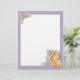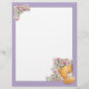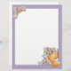 Joli en-tête avec ours en peluche et fleurs avec cadre violet. Fait une belle invitation pour une baby shower, ainsi que du papier à lettres.