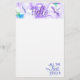 Surprenez quelqu'un de spécial avec son propre papier à lettres personnalisé. Les orchidées bleues et violettes sont belles avec des libellules blanches. Customisez facilement avec votre propre nom et salutation. Versatile pour les invitations à des soirées économiques et parfait pour les palettes violettes, lilas ou lavande. Écrivez des lettres avec votre propre conception de libellule personnalisée et nom préimprimé. Un grand cadeau pour les anniversaires, le jour de la mère, la grand-mère, et plus encore. L'aquarelle peinte à la main fleurie artwork donnera à votre stationnaire personnel un style unique.