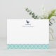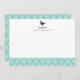 Utilisez ces cartes à plat chic pour toute votre correspondance ! Le design personnalisé Summery comprend une illustration d'oiseau de bécasseau et votre nom ou monogramme en bleu marine classique, avec une bordure de fond à motifs dans un aqua turquoise et aéré. Vient avec des enveloppes blanches.