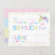 Cette carte de remerciement est dans notre design "Magical Unicorn" en points rose pastel, violet, vert, bleu et doré. Cliquez sur le bouton personnaliser si vous souhaitez déplacer/mettre à l'échelle les images et modifier le texte ! Des variantes de ce design, des couleurs supplémentaires, ainsi que des produits de coordination sont disponibles dans notre boutique, zazzle.com/store/doodlelulu. Contactez-nous si vous avez besoin que cette conception s'applique à un produit spécifique pour créer votre propre article de correspondance unique! Merci tellement pour voir un DoodleLulu par 2 june conception de bogues!