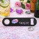 Sturdy, un mode à la, et plein de style, ce ouvre-bouteille est robuste et attrayant. Facile à transporter, cet objet peut glisser dans votre sac de voyage, votre portefeuille, votre sac à main ou votre poche arrière. Couleurs qui se démarquent par leur dynamisme, ce design est plein d'énergie et de vie. A l'aide d'une toile de fond noire, il y a une superbe paire d'empreintes de rouge à lèvres rose et bleu. Directement à droite du rouge à lèvres est votre nom écrit en violet lilas complémentaire. De telles couleurs remarquables, votre ouvre-bouteille sera si facile à trouver même s'il est profond dans votre sac à main.