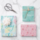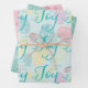 Emballage plat de Pâques en trois mignonnes impressions de coordination. Une feuille a un design d'oeuf pastel et stylisé art de mot "être rempli de Joy". La deuxième feuille contient du texte modifiable. Recherchez le sac cadeau, le tissu et d'autres objets correspondants dans cette même collection de design.