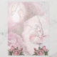 Deux côtés, ballerine, rose, papier à grattoir à fleurs. Les allerines sont en pointe, dansent, et portent une robe rose sur un côté, et une seule ballerine avec des roses roses sur le côté opposé.