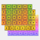 Un motif carré aux tonalités vives vert, jaune, orange et violet qui pop. Les carrés sont aménagés dans un agencement géométrique captivant, mêlant des tons de néon brillants qui pulsent et illuminent, créant un affichage visuel attrayant et énergique.