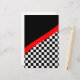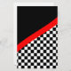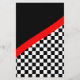 Papier scrapbooking pour ceux qui font des livres de course. Ce papier scrapbook de course unique présente un motif de bord à damiers sur la moitié inférieure avec un arrière - plan noir sur le dessus et une bande de course rouge séparant les 2 motifs.