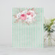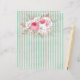 Joli et féminin design avec grand bouquet avec roses roses roses et autres floraux et feuilles sur arrière - plan de menthe en détresse et rayures rose pâle. NOTE : Bouquet en différentes positions sur l'avant et l'arrière