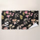 Ensemble de serviettes de bain à monogramme et motif de feuilles botaniques rustiques aquarelle ,ensemble de serviettes de bain avec feuilles vert vintage et fleurs roses élégantes noires .