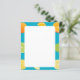 Ce papier stationnaire présente des citrons, des citrons et des oranges sur un arrière - plan bleu turquoise.