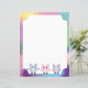 Papier à écriture bordé couleur trois hiboux. Comprend trois chouettes roses, violettes et bleues amusantes avec une bordure design colorée. Le dos a une chouette violette au milieu de la page. Parfait pour écrire des lettres, des notes ou des dessins pour la maison, le bureau et l'école.