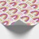 Papier d'emballage glamour pour les cadeaux de votre fille d'anniversaire glitzy. Arc-en-ciel en parties scintillant or et rose sur papier d'emballage d'anniversaire blanc. Personnalisez le nom et l'âge pour un 10e anniversaire personnalisé.