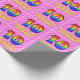 Ce design de papier d'emballage à thème de 10e anniversaire optimisé et amusant comprend un grand nombre de "10" ayant un motif coloré inspiré par l'apparence d'un spectre arc-en-ciel. Il comporte également le message "Joyeux 10e anniversaire", et un nom personnalisé. L'arrière - plan est doté d'un motif rayé rose clair et rose foncé, aux coeurs roses aimés. Un papier d'emballage amusant comme celui-ci pourrait être utilisé pour envelopper des cadeaux donnés à quelqu'un pour célébrer leur dixième anniversaire. [~Z0000415]