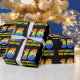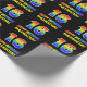 Ce papier d'emballage joyeux, coloré et amusant à thème d'anniversaire comporte un grand nombre de "16" et le message "HAPPY BANTHDAY", tous deux colorés avec un motif inspiré par un gradient de spectre arc-en-ciel, ainsi qu'un nom de destinataire personnalisé jaune gras. L'arrière - plan est noir de couleur. Un papier d’emballage amusant comme celui-ci peut être utilisé pour donner un cadeau ou un cadeau en l’honneur du 16e anniversaire de quelqu’un. [~Z0000475]