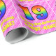 Cette conception de papier d'emballage à thème festif et joyeuse du 19e anniversaire comporte un grand nombre de "19" ayant un motif coloré à l'arc-en-ciel inspiré du spectre dégradé. Il comporte également le message "Joyeux 19e anniversaire", suivi d'un nom personnalisé. L'arrière - plan est doté d'un motif amusant de rayures rose foncé et rose clair, aux coeurs roses aimés. Un papier d'emballage à thème d'anniversaire comme celui-ci pourrait être une façon amusante d'envelopper un cadeau ou un cadeau donné à quelqu'un qui célèbre son 19e anniversaire. [~Z0000415]