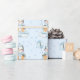 Un joli emballage cadeau de 1er anniversaire avec un dessin d'aquarelle pingouin bébé assis sur un nuage tenant un ballon d'âge et un pois bleu/confetti arrière - plan Un design sucré pour un petit garçon qui aura un an. Ajoutez le nom et l'âge de l'enfant pour le customiser pour ce bébé spécial. Customiser en supprimant l'âge pour un papier d'emballage de baby shower d'amour.