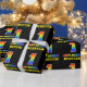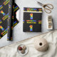 Ce papier d'emballage d'anniversaire joyeux, amusant et coloré comporte un grand numéro "1" et le message "HAPPY BANTHDAY", tous deux colorés avec un motif inspiré par un gradient de spectre arc-en-ciel, ainsi qu'un nom de destinataire personnalisé jaune gras. L'arrière - plan est noir de couleur. Un papier d’emballage amusant comme celui-ci peut être utilisé pour donner un cadeau ou un cadeau en l’honneur du premier anniversaire de quelqu’un. [~Z0000475]