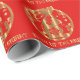 2023 Rabbit Happy Chinese New Year Wrapping Papier | Ce papier d'emballage mignon et festif présente une image époustouflante d'un lapin avec le dicton "Année du lapin" avec un bel effet numérique couleur or et un arrière - plan rouge.